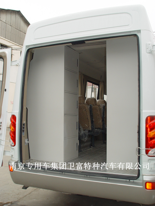 5. 在车内后部左侧放呼吸机柜1只,柜内有仪器固定扎带及挡带,柜内为软毯边面;