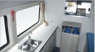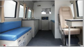 4、车内配有氧气系统、医用洗手池、检查床、推拉窗、医药柜等。