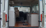 组合电脑工作台(装配电脑)、票据打印机、设备工作柜、保险柜、资料存放柜、设备展示柜、等离子电视、DVD等设备。车内提供多种电源供给方式,包括外电市电装配、逆变电源、UPS装置、可满足不同情况下的用车需要,车内外预设有线电话、网络连接端口装置。其它装配有复印机、扫描仪、车体上掀窗、活动折叠工作椅、饮水机、保险柜、有机玻璃挡板、车内及后门宣传帘、供电系统、宣传装置、滚动灯箱、户外遮阳伞及折叠座椅等设备、外观根据需要在车身制作专用图案或标识;提供更完善的服务。