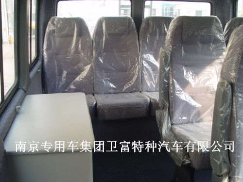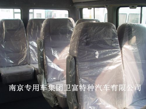 本车型主要采用依维柯系列底盘改装。底盘前后均匀非独立悬挂,非断开式转向式前桥,锻制整体工艺梁,使转向更加灵活、平稳。非断开式驱动后桥,整体冲压焊接桥壳、全浮式半轴使稳定性、平稳性大大提高。真空助力双回路液压制动、冷暖空调使驾驶更安全、舒适。整车配备有车顶行李架等设备。