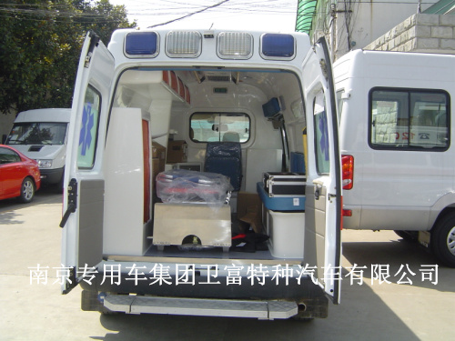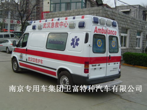 国际流行救护车外形(专利产品,车顶介于高顶与中顶之间,既美观又实用) |