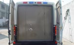 该车内部配备了长条押运座椅2张、副驾驶单人可翻座椅、射击孔、警报器及喇叭系统、车内外摄像监控系统、铝合金花纹地板、顶置排气扇、照明灯等装置,全车防弹玻璃、射击孔、电动升降文件传递口、金属防撞保险杠、逃生窗、机械防盗门锁、密码锁、电子监控摄像头、移动GPS定位系统、液晶显示器。