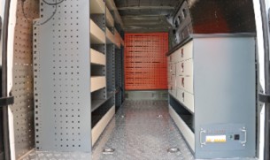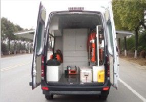 车内设置工具架、工具箱、作业平台、物品柜、机电配套设备及工具装备等,或设置物品展示柜、仪器柜、相关仪器、电视广播系统等。乘员区与服务区隔离。车顶选装顶置空调、喇叭。选装两侧车窗翼开启式活动门,侧后车窗部分或全部盲窗。选装保留侧拉门。