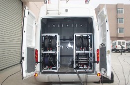 该车主要配制:GPS导航仪、大功率喇叭系统、调音台、硬盘录像系统、长条拐角座椅、豪华旋转座椅、一体化内装饰、大屏幕液晶电视、高保音音响、UPS系统、发电机组、外接电源系统、升降灯、探照灯、广场灯、顶置空调系统、电动中门、胡桃木装饰等。