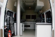 车内设置仪器柜、工作台、配置检测化验系统,采样分析处理系统、监视通信系统等,供电照明系统等。车顶选装工作平台、防护围栏及照明灯设备、监视器、风速风向仪及采样装置。选装盲窗。选装侧开门或不开侧门。选装小型发电机组或工具舱门。选装后部爬梯、倒车雷达等。